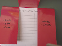 Today students did a spelling activity called "Look, Say, Cover, Write, Check." The purpose of this activity is to study each word carefully, noticing specific parts and trying to commit them to memory. Students use a special study folder to practice writing their words.